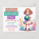 Une mignonne fille de bowling sur le thème de fête d'anniversaire Invitation. En violet, rose et turquoise. Ajoutez des instructions, des instructions ou des détails sur le dos.