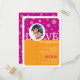 Illustration et dessin original copyright edgeplus*cre8tiv 2009. COLOR SCHEME :: fuschia & jaffa Une façon branchée et amusante d'invitations invités à votre Engagement Party avec ce design ultra moderne et sophistiqué! Personnalisez-le avec une photo de vous 2 et insérez-le dans l'espace prévu, insérez votre libellé (ou utilisez mon exemple), et remplissez vos détails. Ensuite, vous êtes libre d'ajouter un type à l'arrière, écrire à la main un message personnel ou des noms, adresses ajouter un timbre et un message. Cette conception polyvalente est utile pour de nombreuses occasions, y compris les Annonces de naissance :: Enregistrer les Cartes de datation :: Invitations Fiançailles :: Mariage Merci Cartes :: Invitations spéciales pour l'anniversaire et plus encore - s'il vous plaît voir toute ma COLLECTION LOVE-BUBBLES pour quelques idées différentes et quelques modèles de couleurs à la mode! Avez-vous en tête un jeu de couleurs spécifique ?