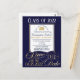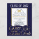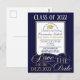 Elégant design or et bleu pour une fête de remise de diplômes, s'il vous plaît personnaliser chaque partie du texte. Enregistrez le design de date inclus avec le lettrage manuel. Élément casquette de diplôme inclus.