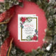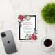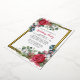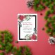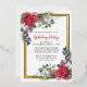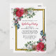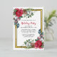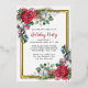 L'élégante invitation à la fête de vacances présente deux ressorts fleuris qui ornent un cadre en feuille d'or. Les sources ont des roses rouges, des fleurs de coton blanc, des sucres de canne, des pins et des verdure sainte. Le dos de la carte postale vous donne suffisamment de place pour envoyer des salutations de vacances et toutes les instructions pour votre fête de vacances.