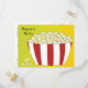 Un design lumineux avec un grand bol rouge et blanc de pop-corn de beurre sur un arrière - plan jaune ombragé. Customisez comme vous le souhaitez.