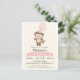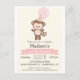 Bébé singe, jungle, animaux zoo, safari thème fille invitation anniversaire fête. Personnalisez ce mignon et rétro se sentir invitation avec le nom de votre enfant. Joli, simple, design sobre. Parfait pour les premiers, 1er, anniversaire, tout-petits, jeunes enfants ou plus âgés. Les couleurs sont marron et rose clair pastel.