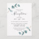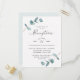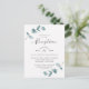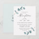 Faire-part de réception de mariage à cadre eucalyptus minimaliste simple. Parfait pour votre thème de mariage de jardin ou extérieur de printemps ou d'été. Dans une palette de couleurs douces et subtiles de verts sarcelle aqua, de menthe pastel, de gris bleu poussiéreux et de blanc classique simple. La police de calligraphie élégante est mise en vedette pour le mot Réception. Ce design est parfait pour un mariage à la ferme, à la campagne ou dans un jardin. Les invitations eucalyptus simples sont faciles à personnaliser avec ce modèle pour votre papeterie de mariage DIY et abordable.