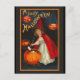 sorcière vintage d'Halloween en tirant des noms d'un jack-o-lanterne. Voeux vintages d'un précieux petit rappel du passé d'Halloween. Cliquez sur customiser et ajoutez votre propre texte, créez une invitation à une fête ou un message d'anniversaire.