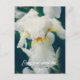 Elégante carte postale blanche avec photo d'iris, recouverte de gouttes de pluie. S'il vous plaît, personnalisez-le, en ajoutant votre propre message et un "timbre" (petite photo à l'arrière). Pour d'autres modifications (style de police, couleur de police, position du texte), cliquez sur "Modifier la conception".