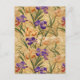 Restez en contact avec vos amis et vos proches grâce à une belle carte postale motif de chiyogami ornée d'iris sur un arrière - plan d'or.