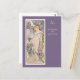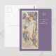 Carte postale avec l'illustration vintage d'Alphonse Mucha de The Flower Series, Iris (1898), qui a été numériquement restaurée et améliorée. Portrait d'une femme dans une robe du soir entourée de fleurs d'iris lavande.