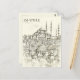 Cette carte postale de voyage, dessinée à la main, offre une vue sur le quartier Sultanahmet d'Istanbul.
