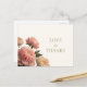 Moderne et chic. Ce charmant mariage merci poscard présente un beau bouquet de roses voluptueux et un ensemble de polices contemporaines contre l'ivoire et les arrière - plans blancs.