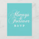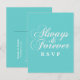 Carte postale de réponse toujours et jamais Mariage, tendance et chic, avec une belle conception de texte de typographie manuscrite en blanc. Cette carte RSVP simple et élégante donne le ton à un mariage élégant et romantique et se customise facilement avec vos détails de mariage. Cliquez sur "Customiser" pour trouver d'autres options de personnalisation. La couleur Arrière - plan peut être changée en n'importe quelle couleur.