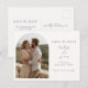 Cette chic et élégante carte de mariage à conserver présente un beau couple sous un arche boho et un ensemble contemporain de polices lavande, sur un fond ivoire doux. Des variations de ce design sont disponibles dans la collection complète. Choix parfait pour un mariage de printemps-été dans un jardin.