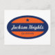 Design de signalisation ovale avec les quartiers de New York. Couleurs officielles orange et bleu de NYC. Jackson Heights, quartier de Queens.