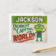 Une carte postale de voyage vintage Jackson Mississippi amusante avec un robot amical avec un texte amusant de style rétro qui dit, "Jackson, Robot Capital du monde !"