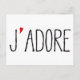 Carte Postale J'adore, art de mot français avec cœur rouge