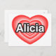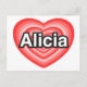 Carte Postale J'aime Alicia. Je t'aime Alicia. Cœur