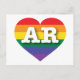 Cette carte postale présente un cœur de fierté arc-en-ciel et les majuscules blanches et grasses AR, l'abréviation officielle de l'Arkansas, l'État naturel. Montrez vos vraies couleurs, soutenez l'égalité du mariage et célébrez la fierté gay.
