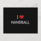 "J'aime Handball," lettrage blanc sur fond noir, carte postale.