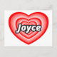 Un coeur rouge avec le nom Joyce au centre. J'aime Joyce. J'aime Joyce. Je t'aime Joyce. Un cadeau pour quelqu'un qui aime Joyce. Une Saint-Valentin pour Joyce. Joyce anniversaire heureux. Je suis amoureux de Joyce. Bonjour, je m'appelle Joyce. @heartlandistan