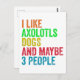 Carte Postale J'aime les axolotls les chiens et peut-être 3 pers