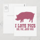 Carte Postale J'aime les cochons