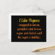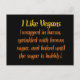 Le dicton drôle sur cette carte postale anti-végétalienne dit en gros caractères gras : "J'aime les Vegans." Puis, en lettres plus petites, la punchline dit : "enveloppé dans du bacon, saupoudré de sucre brun et cuit jusqu'à ce que le sucre soit mousseux." Mmmm... savoureux, n'est-ce pas ? Tout est en plaisantant, et le proverbe irrévérencieux sur cette carte postale va certainement faire rire les destinataires, végétaliens ou non. Est-ce une carte postale offensante ? Pas si vous avez un sens de l'humour. Prenez un tas ; le rire aide à se débarrasser de toutes les toxines que nous mangeons.