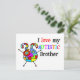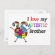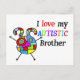 I Love My Autistic Brother Design aidera à diffuser la Sensibilisation sur l'autisme! L'autisme aura un jour un effet sur quelqu'un que nous connaissons et aimons tous. Un enfant sur 150 qui naît est diagnostiqué d'autisme, Nous pensons qu'il est temps de faire quelque chose à ce sujet. Faites passer le mot avec nos t-shirts de Sensibilisation sur l'autisme. Le design est disponible sur les combinaisons de corps, tee - shirt, tee - shirts à manches longues, cartes à mugs, magnets, autocollants, boutons, porte - clés, sacs fourre-tout et plus encore.
