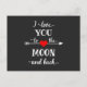 Personnalisez avec un nom - Je vous aime à la lune et de retour en script mixte et en majuscules serif en lettres de police en blanc avec un accent rouge coeur tourné avec une flèche blanche. Utilisez le modèle pour vous changer en nom personnel.