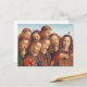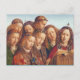 Carte postale inspirée du magnifique retable de Gand, créé par l'artiste flamand Jan van Eyck (vers 1390-1441) et son frère Hubert. L'image montre le détail du choeur d'anges, avec l'accent sur les visages très expressifs des huit chanteurs. Il y a eu beaucoup de débats sur les visages expressifs des anges. Certains érudits pensent qu'ils ne font que montrer le ton de la musique, d'autres suggèrent que la mimétrie a un sens plus profond, qu'elle peut refléter les émotions humaines devant les attributs majeurs du Seigneur : joie en présence de grandeur : espérance en présence de générosité ; amour pieux en présence de grâce ; peur en présence de justice ; chagrin, tristesse et repentance en présence de miséricorde.