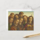 Carte postale inspirée du magnifique retable de Gand, créé par l'artiste flamand Jan van Eyck (vers 1390-1441) et son frère Hubert. L'image montre le détail du choeur d'anges, avec l'accent sur les visages très expressifs des huit chanteurs. Il y a eu beaucoup de débats sur les visages expressifs des anges. Certains érudits pensent qu'ils ne font que montrer le ton de la musique, d'autres suggèrent que la mimétrie a un sens plus profond, qu'elle peut refléter les émotions humaines devant les attributs majeurs du Seigneur : joie en présence de grandeur : espérance en présence de générosité ; amour pieux en présence de grâce ; peur en présence de justice ; chagrin, tristesse et repentance en présence de miséricorde.