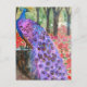 A la recherche d'un paon exotique ? dans cet art paon, un paon bleu violet & saphir se dresse sur un pied d'arbre en bois dans une magnifique prairie remplie de coraux et de fleurs sauvages roses. Les plumes de Peacock sont des nuances de phlox et d'orchidée avec de nombreux marron pour compléter les couleurs riches. L'arrière - plan a également des arbres bruns stériles avec des verdure de cèdre et des jaunes de bambou au-delà. Conçu par l'aquarelle Miriam Schulman