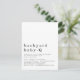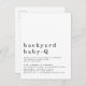 Jardin simple Baby Q BBQ Douche N'importe quel Invitation couleur sur une carte postale pratique. Beaucoup d'espace blanc au-dessus de la typographie pour une touche contemporaine. L'en-tête de l'occasion est grand en minuscule élégant avec les détails en bas. Personnalisez facilement le texte à vos propres détails. Cliquez sur customiser plus loin pour modifier les couleurs de l'arrière - plan et de la police si vous le souhaitez.