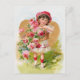 Petit jardinier vintage en robe d'été blanche avec un panier rempli de roses rouges. Légère, joyeux image graphique antique romantique.Avec l'aimable autorisation de cassandra204.
