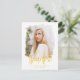Carte Postale Jaune | Preppy Script Photo Graduation Merci