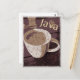Un vintage cadre rustique illustration d'une tasse de café remplie dans les tons café - terre avec le texte " Java ".