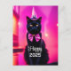 Rejoignez-nous pour une joyeuse fête du Nouvel An avec une carte postale décontractée présentant des oeuvres d'imaginaire animées ! Un chaton noir élégant avec une casquette pointue et une cravate arc violet arborent un look jazzy, accompagné du texte "Happy 2025" et d'une citation amusante de l'autre côté : "Feline good about the year future—Let's party !" Parfait pour ceux qui aiment les chats et un bon rire!