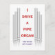 Je conduis un orgue à pipe - comment vous rendez-vous au travail ? fait un avant délicieux pour les autocollants, cartes postales à envoyer à des amis musicaux. Comprend un dessin de tuyaux avec les mots que je conduis pour travailler en grand type rouge et sous les mots "Comment allez-vous travailler?" en bleu.