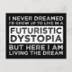 Je N'Ai Jamais rêvé Que Je Vivais Dans Une Dystopie Futuriste, Mais Me Voilà, Vivant Le Rêve. Conception amusante pour Gen Xers & Millennials qui connaissent la fiction et les romans dystopiques, le cyberpunk & les films post-apocalyptiques et les émissions de télévision, et qui veulent résister. Le présent peut sembler la société dystopique de l'avenir que nous avons souvent vu dans la science-fiction & science-fiction. Si vous êtes anti-Trump, soucieux du changement climatique, de la résistance, du Brexit, de Hong Kong et de l'avenir de notre planète et de notre pays, alors ce design est pour vous !