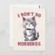 Commencez votre journée avec une touche d'humour et de charme félin avec cette carte postale "Je ne fais pas le matin" ! Dotée d'un chat gris endormi tenant une tasse de café, cette adorable oeuvre d'art est parfaite pour les amoureux de les chats comme pour les amateurs de café. Un cadeau délicieux pour toute personne qui n’est pas une personne du matin, ce design ajoute une touche ludique à votre quotidien.