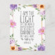Je suis la lumière du monde. Celui qui me suivra ne marchera jamais dans l'obscurité, mais aura la lumière de la vie, Jean 8:12. Carte postale personnalisée, verset biblique, Art Écriture, Inspiration, Motivation, Don chrétien.