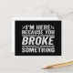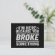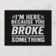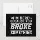 Carte Postale Je suis là parce que vous avez cassé quelque chose