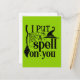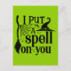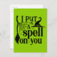 Ce design classique d'Halloween comporte l'expression éffrayante "Je mets un sort sur vous" dans une police audacieuse d'inspiration gothique. Les couleurs noir et blanc rehaussent l'atmosphère étrange, rendant le design parfait pour la saison d'Halloween. Le texte est accompagné d'éléments de sorcellerie iconiques, dont un casquette de sorcière pointu, un bâton de brosse, une toile d'araignée et une minuscule araignée, tous arrangés pour créer une composition de sorcière. Le détail subtil des points autour du texte ajoute une touche de charme magique.