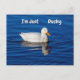 Un petit canard blanc mignon nage dans une eau bleu vif. Un excellent moyen de donner des nouvelles à vos amis et à votre famille.