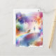 Illustration aquarelle Je vous retrouverai au Pont Arc-en-Ciel. Une scène fantaisiste et onirique représentant un pont arc-en-ciel coloré et éthéré s'étendant sur un paysage fantastique rempli de nuages doux et tourbillonnants aux teintes vibrantes de bleu, rose et jaune. L'atmosphère est sereine et magique, évoquant un sentiment d'émerveillement et de tranquillité, entourée d'étoiles scintillantes et de traînées lumineuses qui renforcent la sensation enchanteresse de la scène.