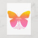 Un beau papillon rose et jaune emblaqué du mot "espérance" et entouré du verset biblique Jérémie 29:11