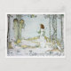 Des bleus et des blancs doux et délicats ornent cette illustration vintage détaillée de Jessie M. King de l'Ecole d'Art de Glasgow. Elle s'appelle "The Woodland". Dans elle une fille dans la forêt vient sur les anges, certains instruments de jeu, entouré par la nature idyllique et choeurs d'oiseaux.