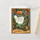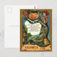 Carte Postale Jeune femme sorcière avec balai et citrouille, vin