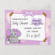 Jolie Purple Elephant Girl's Baby shower Postcard Invitations.