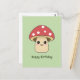 Une carte d'anniversaire verte avec une illustration d'un joli champignon dans le style cartoon et un texte personnalisable en dessous ! Cela pourrait être parfait pour l'envoyer à un enfant, un mycologue, ou un ami qui aime les personnages Kawaii et la nature !