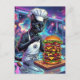 Carte Postale Joli Chat Cuisinier Réalisant un Burger Géant