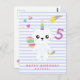 NouvelleAlléeParc - Carte postale personnalisée pour l'anniversaire des enfants avec un joli chat licorne tenant une glace colorée en forme de sucette, avec une étoile filante et de petits cœurs, sur un fond rayé bleu clair.